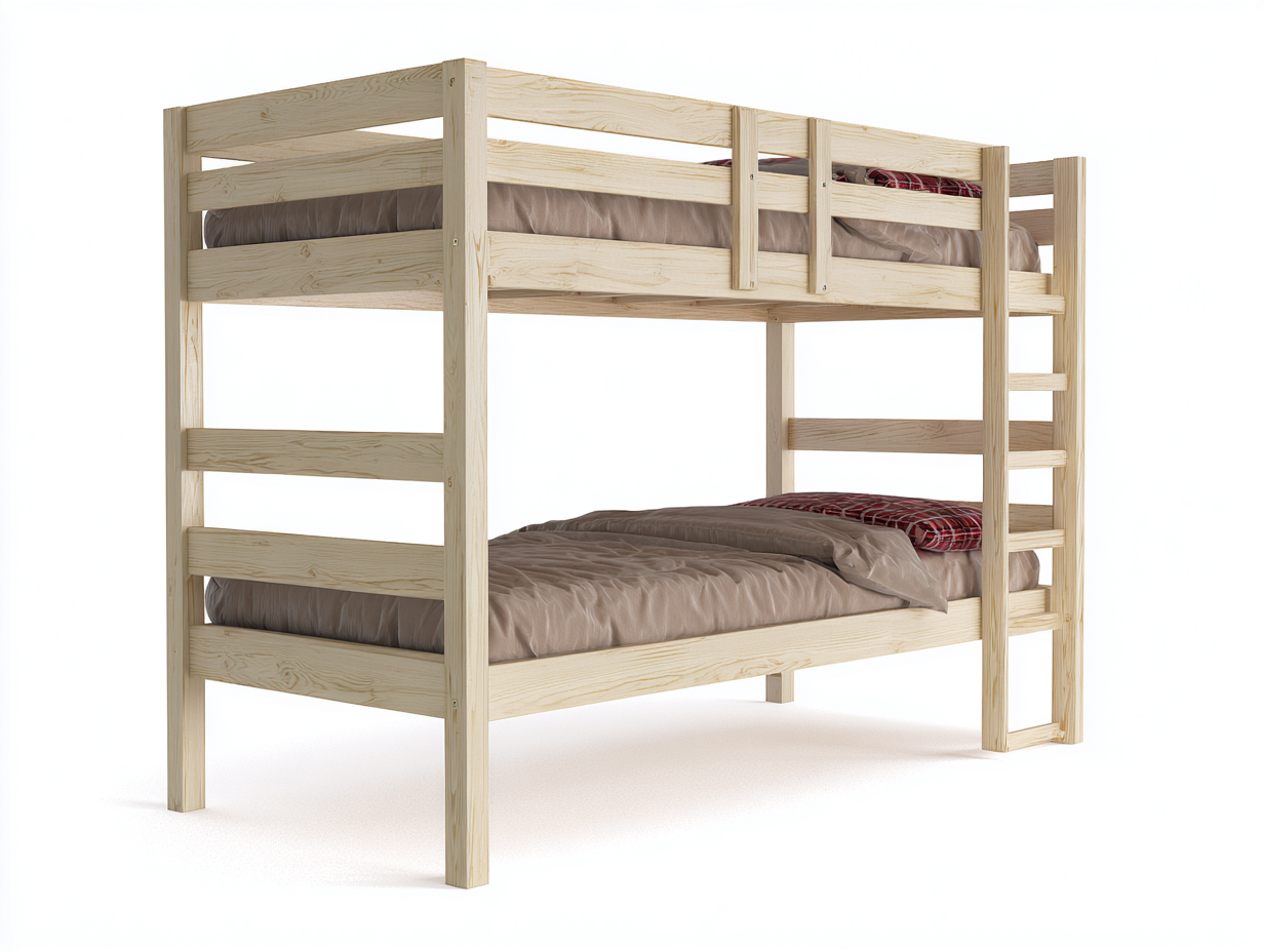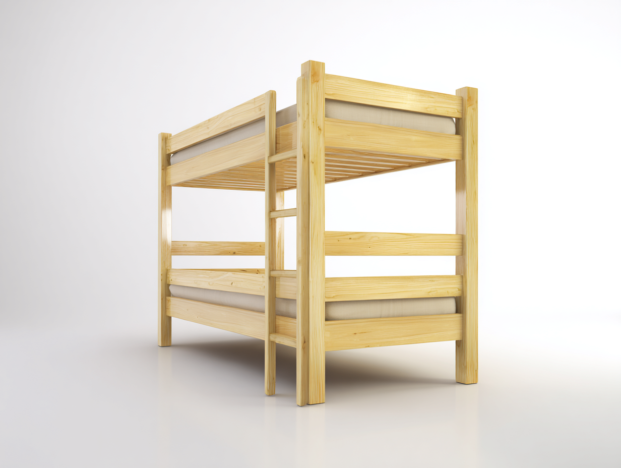 Lits superposés en bois massif 200x140x160 cm - bois clair - structure simple avec échelle intégrée