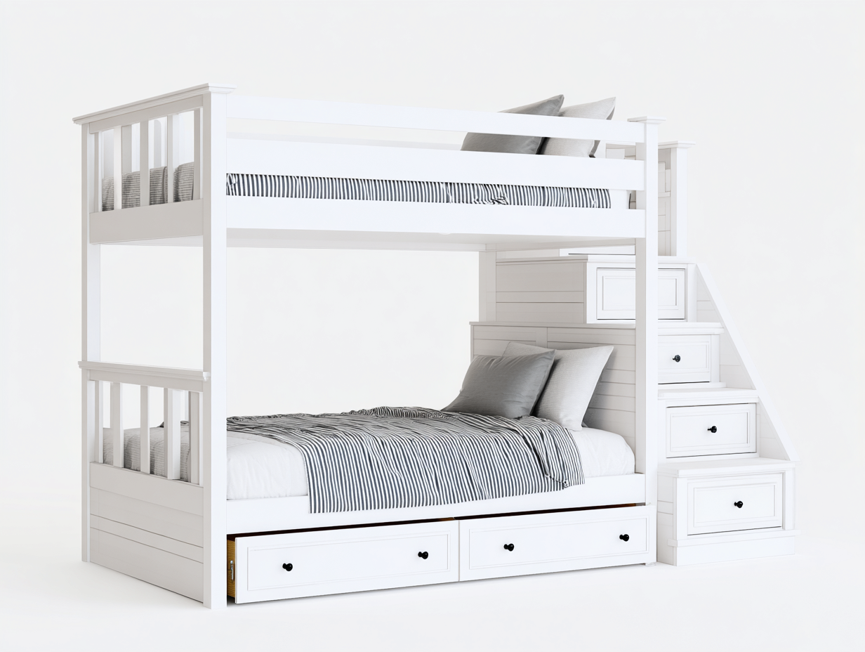 Lits superposés en bois avec rangements intégrés 200x140x170 cm - blanc - chambre - design fonctionnel