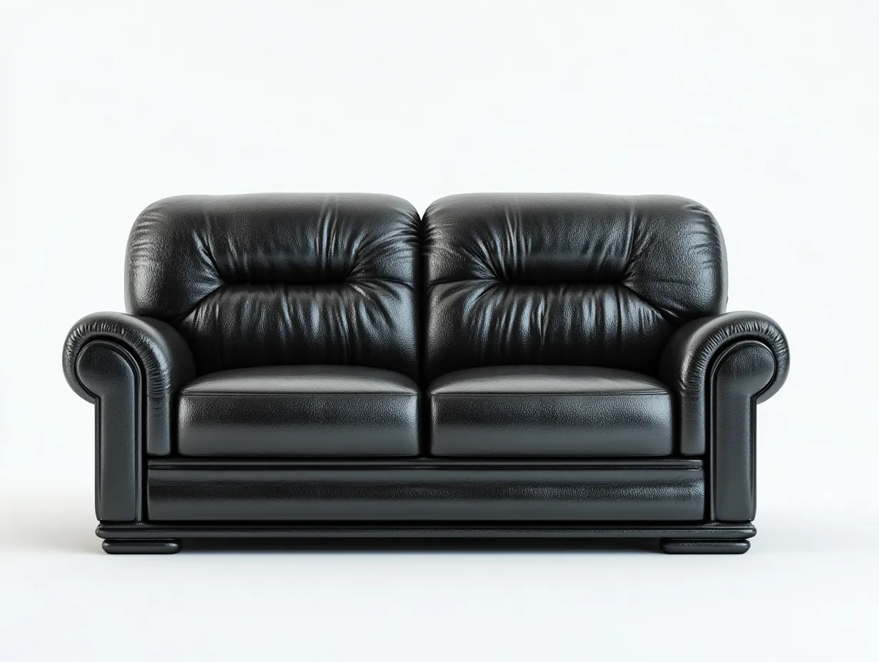 La structure repose sur un châssis robuste assurant une bonne stabilité. Le revêtement en cuir noir présente un toucher souple et une finition soignée, mettant en valeur l'aspect authentique du matériau et facilitant l'entretien au quotidien.