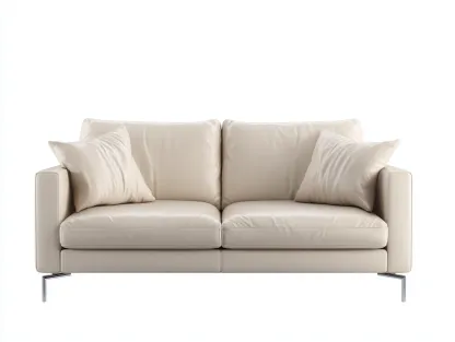 Le canapé est recouvert d'un cuir synthétique lisse de couleur beige clair, au toucher doux et à l'aspect uniforme. La structure interne est conçue pour assurer une bonne stabilité et une tenue fiable dans le temps.