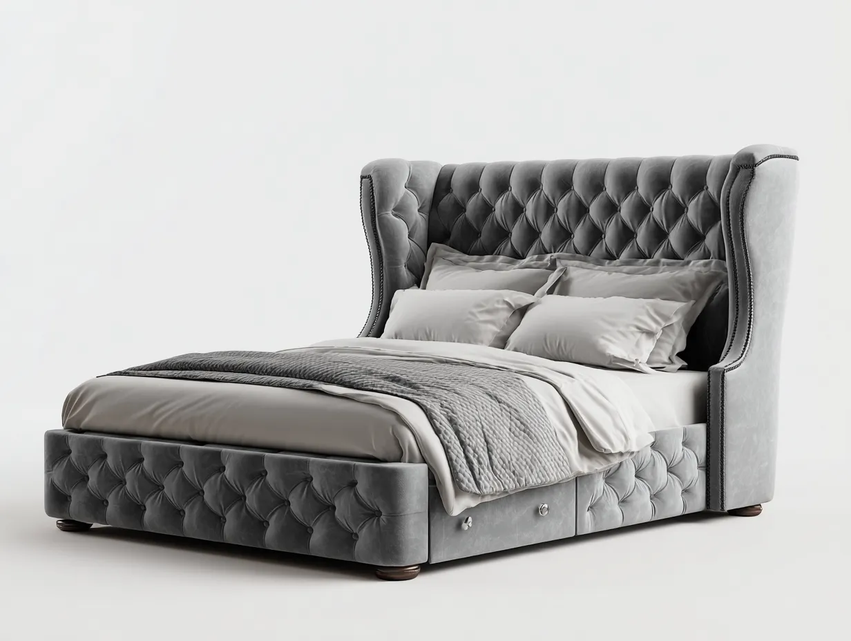 Ce lit double capitonné est conçu pour apporter confort et élégance à une chambre adulte. Sa structure généreuse et son revêtement textile offrent une présence équilibrée, adaptée à un usage quotidien dans un intérieur soigné.