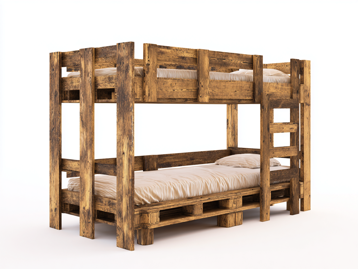 Les lits superposés disposent d'une échelle intégrée facilitant l'accès au couchage supérieur. Les garde-corps assurent un maintien sécurisé et contribuent à une utilisation quotidienne confortable.
